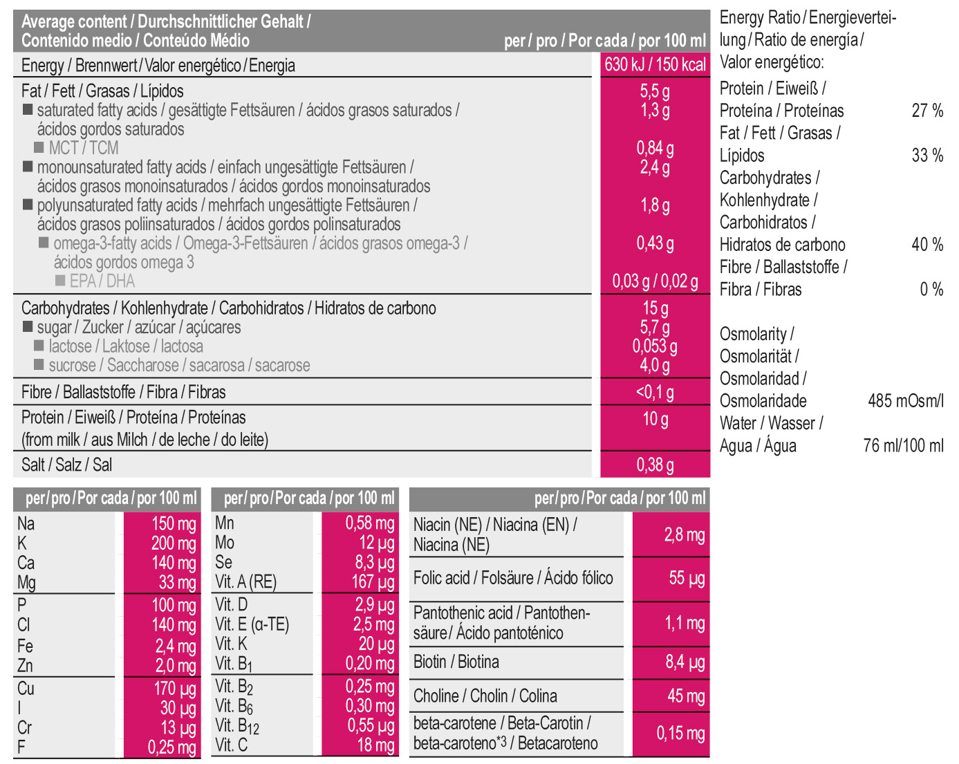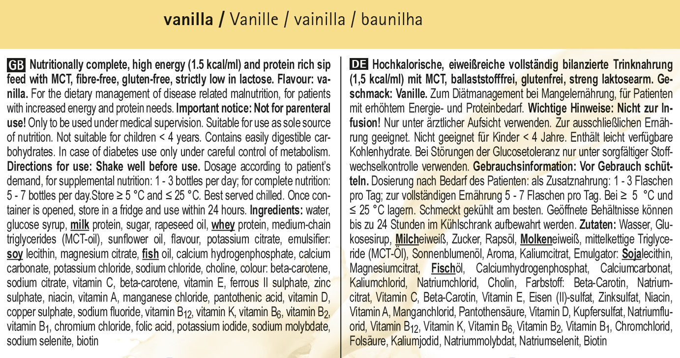 Nutricomp® Drink Plus HP ist ein Lebensmittel für besondere medizinische Zwecke (bilanzierte Diät) zum Diätmanagement bei Mangelernährung. Nutricomp® Drink Plus HP eigent sich für Patienten mit erhöhtem Energiebedarf, mit der Möglichkeit zur oralen Nahrungsaufnahme und kann zur vollständigen oder zusätzlichen Ernährung eingesetzt werden.